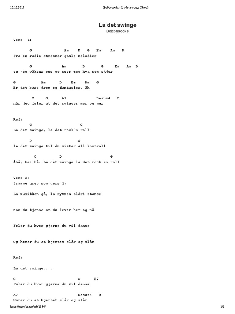 La musikken gå, la rytmen aldri stanse kan du kjenne at du lever her og nå? Bobbysocks was a norwegian pop duo, that won the eurovision song contest 1985 with the song la det svinge (let it swing). Er det bare drøm og fantasier når jeg føler at det svinger mer og mer? La det swinge (let it swing) is a song in norwegian, sung by the pop duo bobbysocks!. La det svinge til du mister all kontroll.
